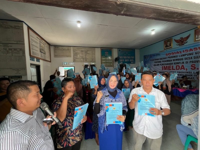 BANDARLAMPUNG, DL – Upaya mencegah konflik sosial sejak dari akar rumput terus diperkuat. Anggota DPRD Provinsi Lampung Daerah Pemilihan (Dapil) IV yang meliputi Pesisir Barat, Lampung Barat, dan Tanggamus, Imelda SH, menggelar Sosialisasi Peraturan Daerah (Perda) Nomor 1 Tahun 2016 tentang Pedoman Rembug Desa dan Kelurahan dalam Pencegahan Konflik di Provinsi Lampung, Sabtu (24/1).