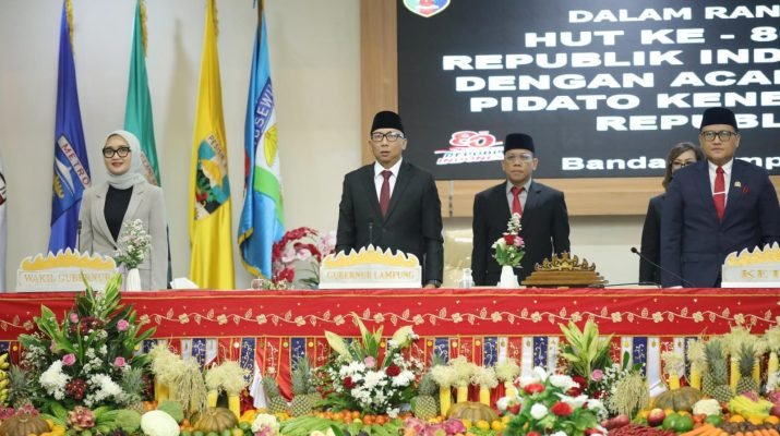 BANDARLAMPUNG, DL – Ketua DPRD Provinsi Lampung Ahmad Giri Akbar memimpin Rapat Paripurna Istimewa dalam rangka peringatan HUT RI ke 80, dalam agenda Mendengarkan pidato Kenegaraan Presiden Republik Indonesia Prabowo Subianto.