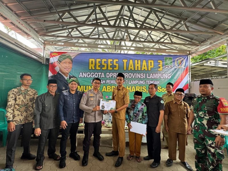 BANDARLAMPUNG, DL – Provinsi Lampung dari Komisi III, Munir Abdul Haris, S.Sos.I, melaksanakan kegiatan reses tahap III secara maraton di 12 titik di Kabupaten Lampung Tengah. Kegiatan yang berlangsung sejak 23 Juli hingga 1 Agustus 2025 ini mencakup enam kecamatan, yakni Sendang Agung, Pubian, Padang Ratu, Bangun Rejo, Gunung Sugih, dan Bandar Mataram.