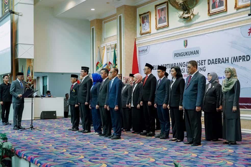 BANDARLAMPUNG, DL – Gubernur Rahmat Mirzani Djausal secara resmi mengukuhkan Majelis Pertimbangan Riset Daerah (MPRD) Provinsi Lampung periode 2025-2030, di Balai Keratun Lantai III, Kamis (6/11/2025).