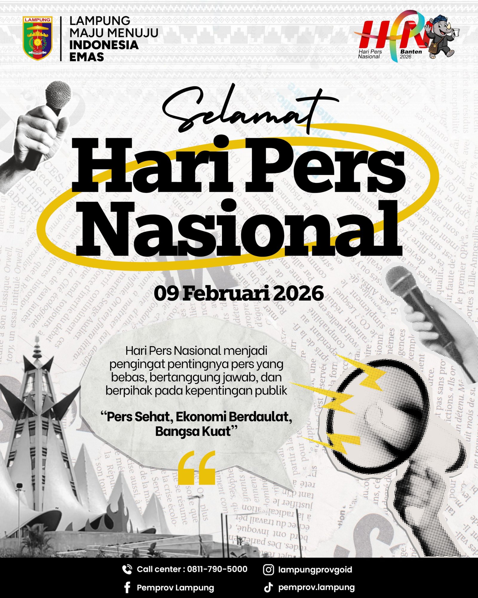 BANDARLAMPUNG, DL – Hari Pers Nasional (HPN) diperingati setiap 9 Februari, dalam rangka memperingati Hari Ulang Tahun Persatuan Wartawan Indonesia (HUT PWI). Hari Pers Nasional 2026 mengangkat tema “Pers Sehat, Ekonomi Berdaulat, Bangsa Kuat”.