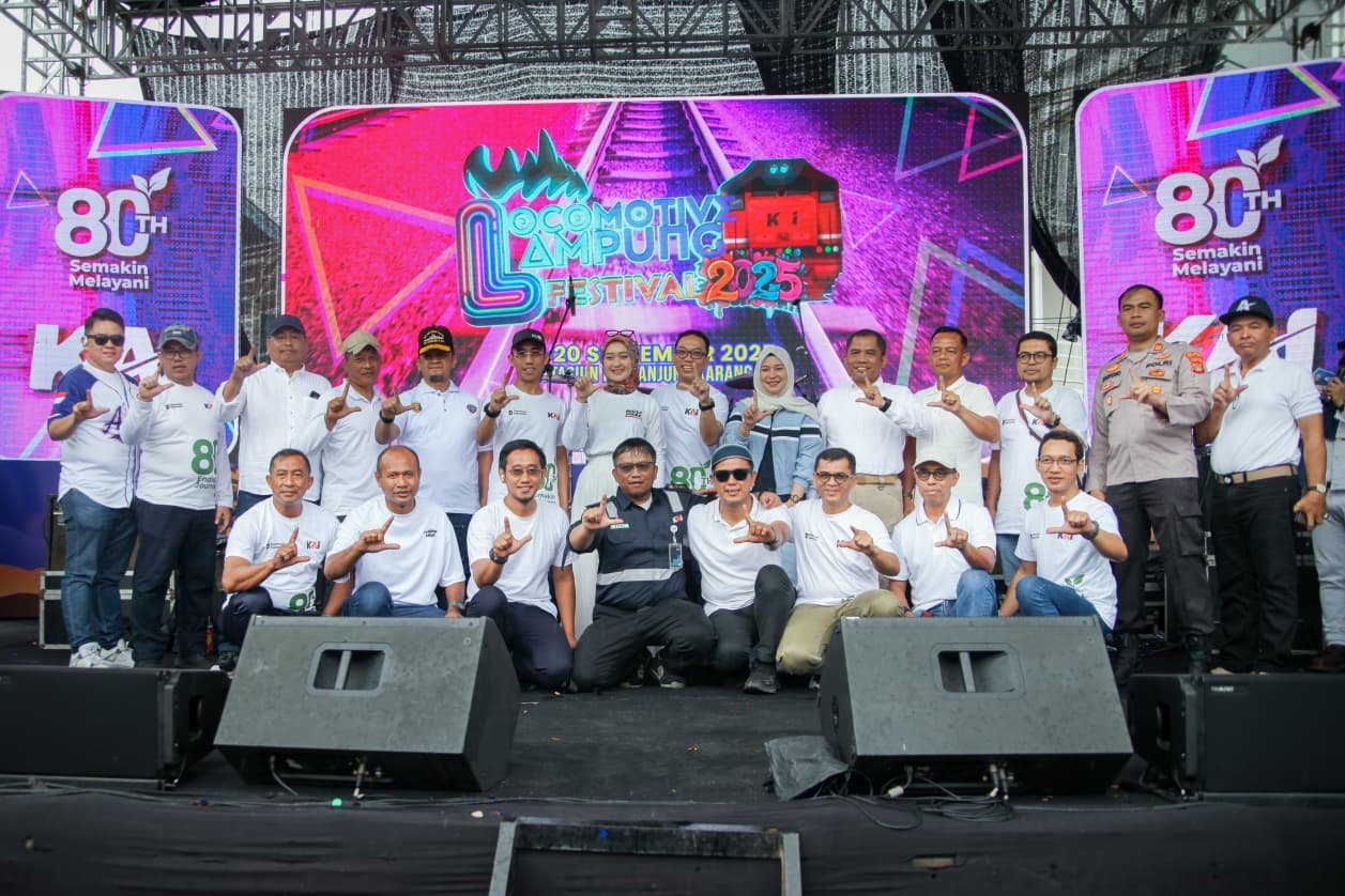 BANDARLAMPUNG, DL – Wakil Gubernur Lampung, Jihan Nurlela, menghadiri acara Lokomotive Lampung Fest 2025 dalam rangkaian peringatan Hari Ulang Tahun (HUT) ke-80 PT. Kereta Api Indonesia (Persero), di Bambu Kuning Square Stasiun Tanjung Karang, Minggu (21/09/2025).